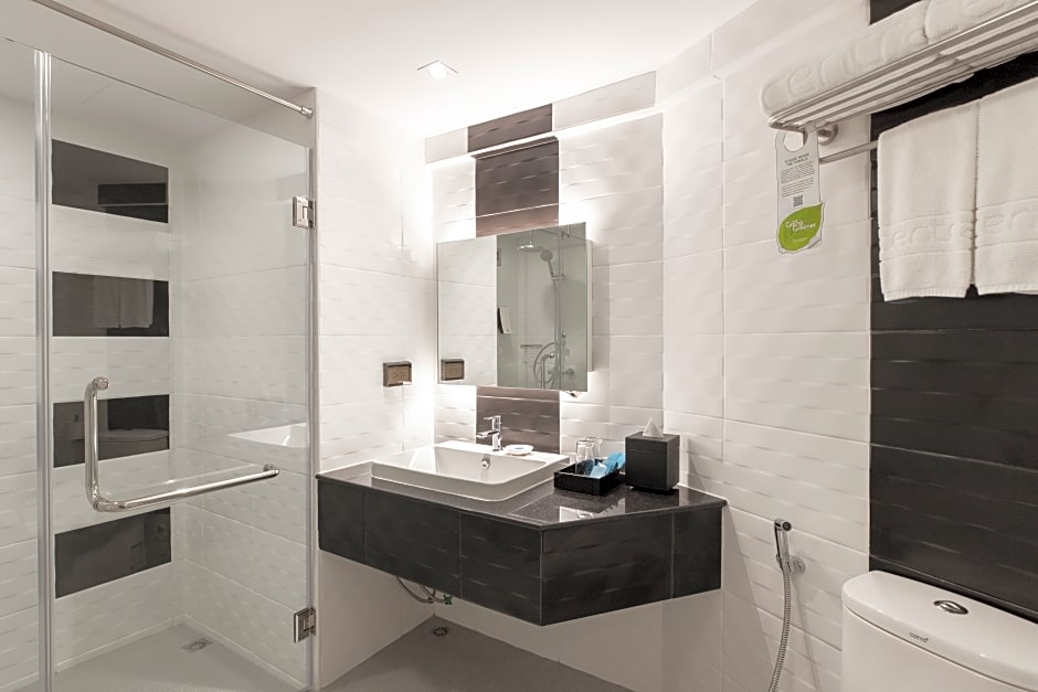 Experience luxury and comfort in our Centra Suite King Room, boasting a spacious 431 sqft suite with a balcony offering breathtaking views. Relax in the grand King size bed, enjoy the convenience of a refrigerator and tea/coffee maker, and indulge in the added extras of a bathrobe, slippers, and a safe. With room to accommodate 3 adults and 1 child, this suite is perfect for an unforgettable stay.